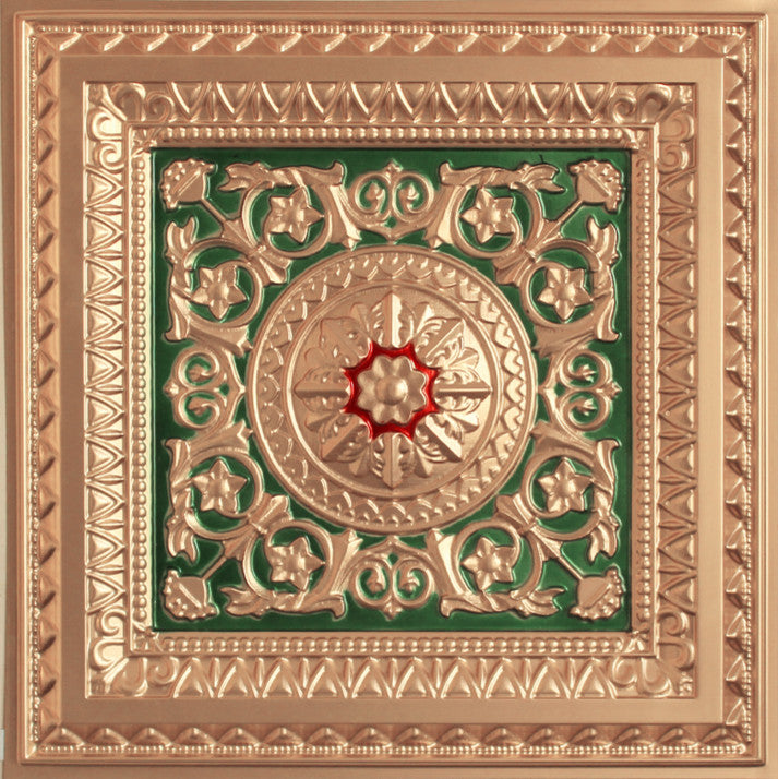 24"x24" D223 PVC Faux Tin Drop-in Ceiling Tiles Made of PVC, Set of 6, Gold/Green/Red