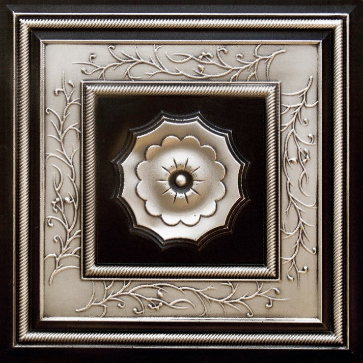 24"x24" Faux Tin Ceiling Tiles, Glue-up or Drop-in, Set of 6, Antique Silver