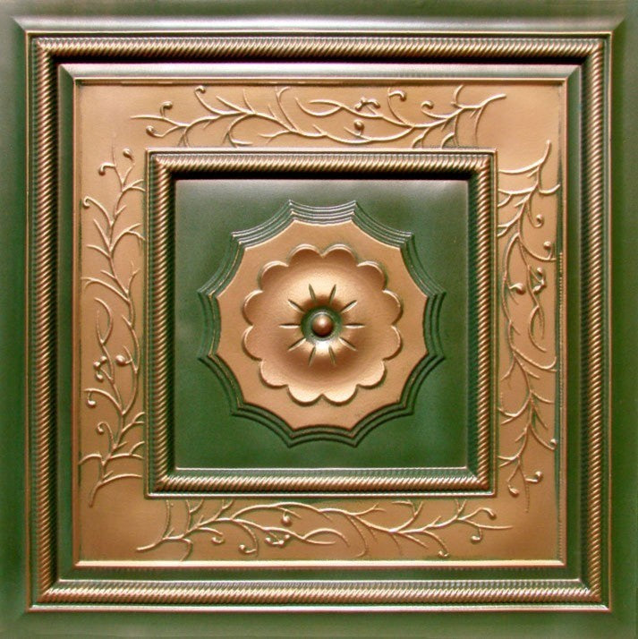 24"x24" Faux Tin Ceiling Tiles, Glue-up or Drop-in, Set of 6, Copper patina