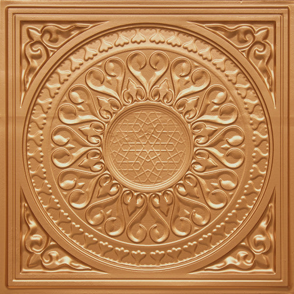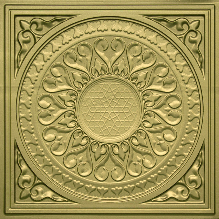 24"x24" PVC Faux Tin Ceiling Tiles, Glue-up or Drop-in, Set of 6, Brass