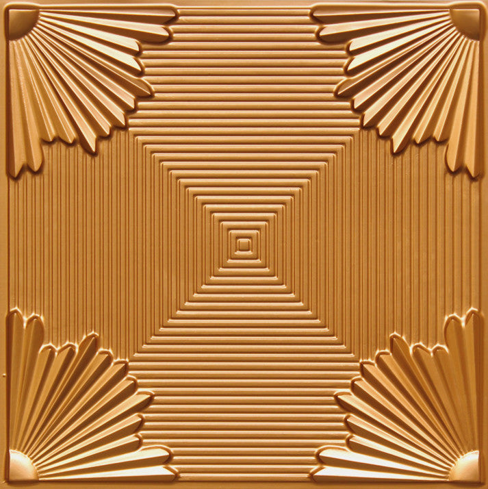 24"x24" PVC Faux Tin Ceiling Tiles, Glue-up or Drop-in, Set of 6, Gold