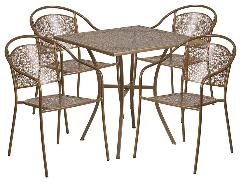 28'' Square Gold Indoor-Outdoor Steel Patio Table Set With 4 Round Back Chairs