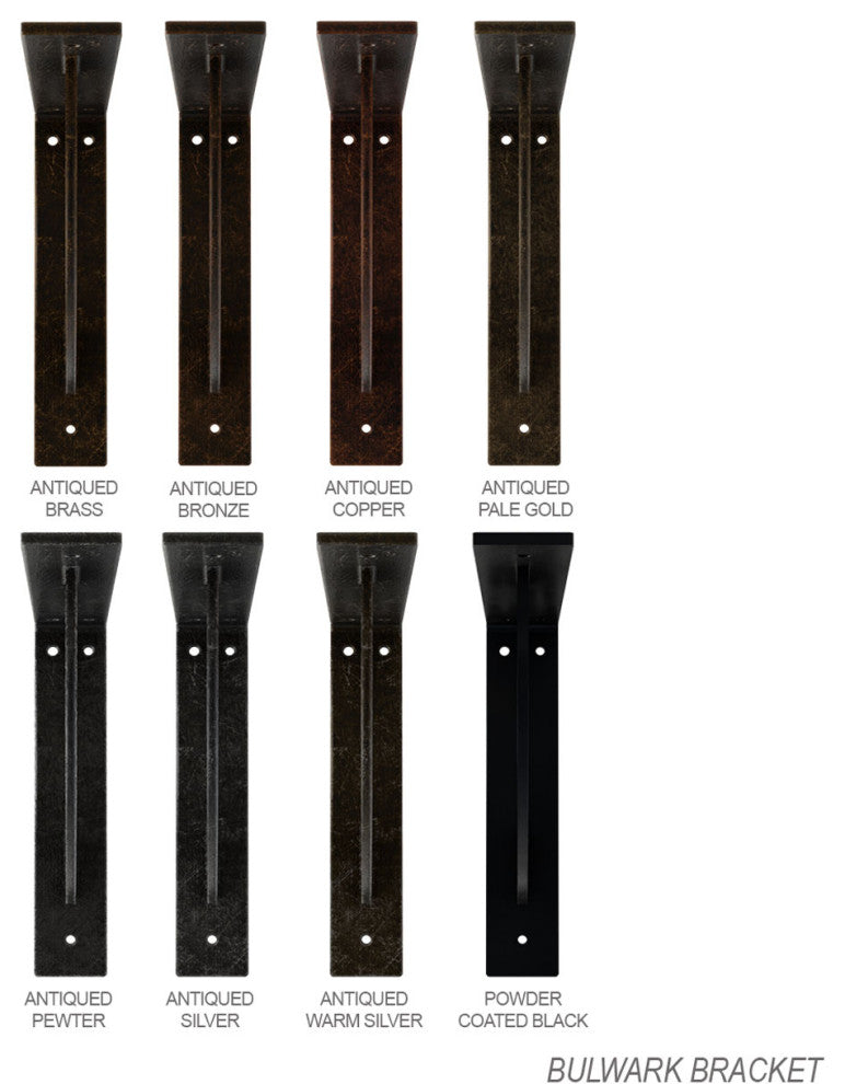 2"W x 14"D x 14"H Bulwark Bracket, Steel. Authentic wood brackets are the perfect choice for supporting countertops and shelving. With the proper installation, these wood brackets can support up to 250lbs, which gives you the flexibility to use a decorative bracket for support. These brackets ship to you fully sanded and ready for your paint or stain.
