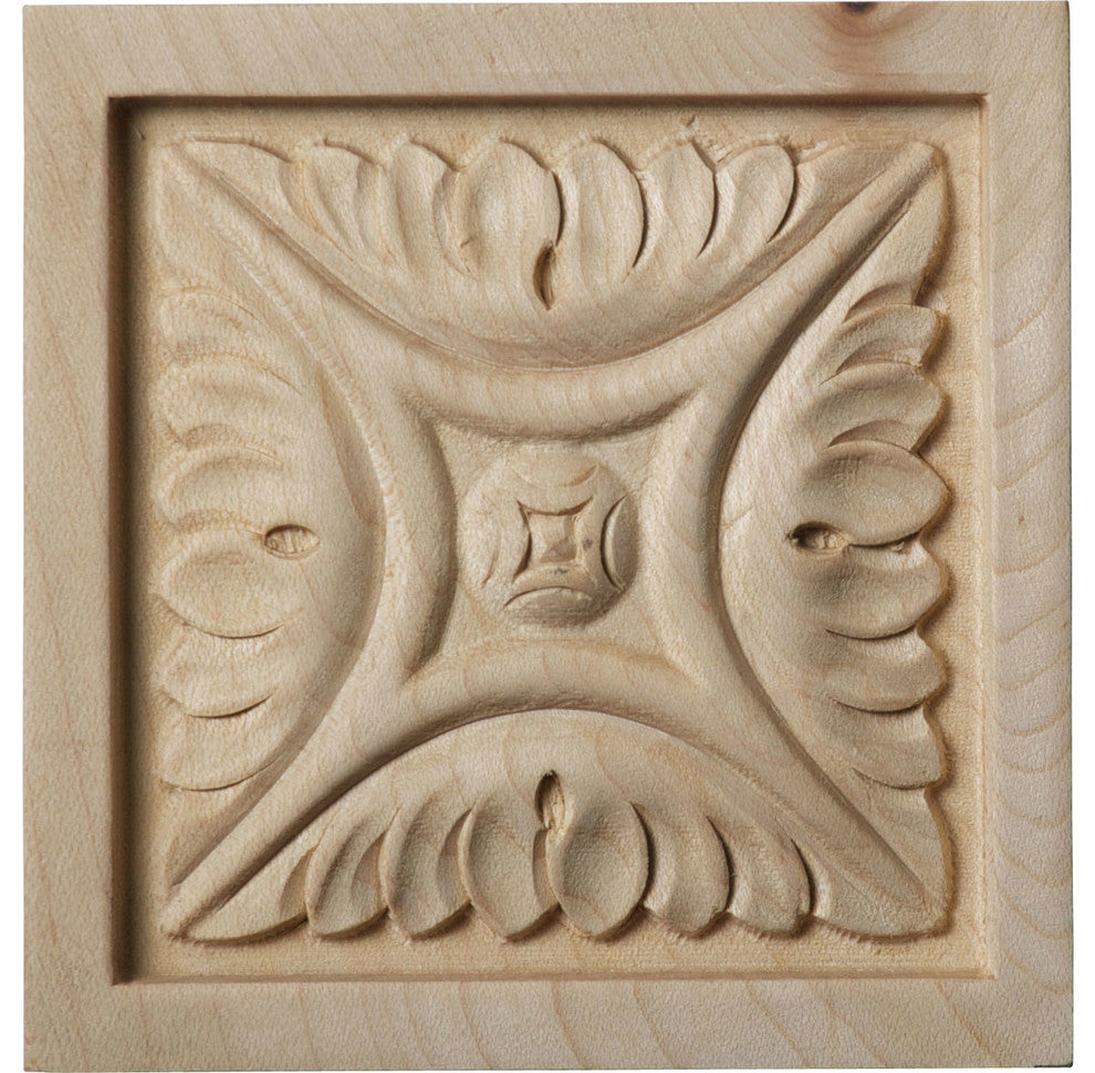 3 1/2"W x 3 1/2"H x 3/4"D Medium Middlesbrough Rosette, Cherry. Our rosettes are the perfect accent pieces to cabinetry, furniture, fireplace mantels, ceilings, and more. Each pattern is carefully crafted after traditional and historical designs. Each piece comes factory primed and ready for your paint. They can install simply with traditional adhesives and finishing nails.