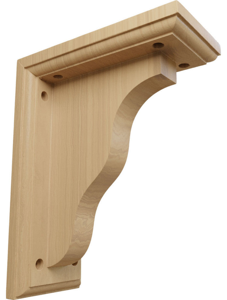 3 1/2"W x 7"D x 9"H Hamilton Traditional Bracket, Cherry. Authentic wood brackets are the perfect choice for supporting countertops and shelving. With the proper installation, these wood brackets can support up to 250lbs, which gives you the flexibility to use a decorative bracket for support. Available in a variety of species, these brackets ship to you fully sanded and ready for your paint or stain.