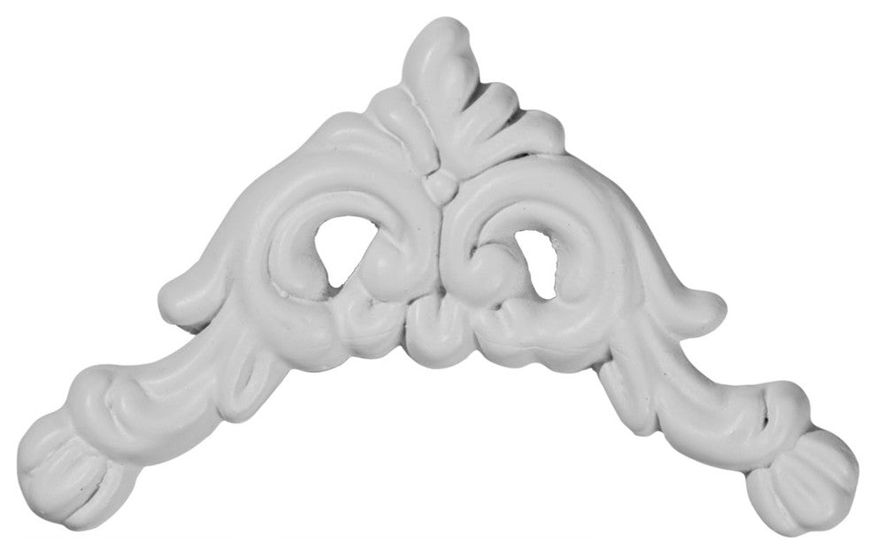 3 3/4"W x 3 3/4"H Edinburgh Corner Onlay. Our appliques and onlays are the perfect accent pieces to cabinetry, furniture, fireplace mantels, ceilings, and more. Each pattern is carefully crafted after traditional and historical designs. Each polyurethane piece is easily installed, just like wood pieces, with simple glues and finish nails. Another benefit of polyurethane is it will not rot or crack, and is impervious to insect manifestations. It comes to you factory primed and ready for your paint, faux finish, gel stain, marbleizing and more.