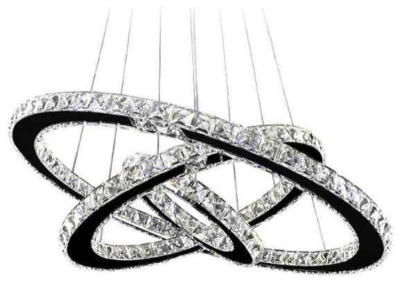 3 Circle Diamond Ring Soft White LED Lustre Crystal Chandelier Light Modern Pendant (32"Wx32"W) XTKBSC800. Day light (DL) Bring bold, contemporary flair to your home with this glamorous pendant light. A chrome finish frame surrounds a ring of crystal glass that shimmers when illuminated.Item specificationLight Source: LED (Day Light)Bulbs Included: YesType: ChandelierStyle: Rustic Modern Cottage Art Deco Traditional Classical Europe Vintage TiffanyMaterial: K9 Crystal, stainless steelUsage: Living Room Mall Bedroom Hotel Dining Room Office KitchenBody Material: Crystal Stainless SteelNumber of Lights: 11~ UP 10 ~ UpShade Color: Day LightVoltage: AC 110V -120V 220V - 240V 110V,120V,220V,230V,240VExposure area: 500 - 900 square inchesColor & Finish: Daylignt LEDDimension: 31.5" Wide x 31.50" Length (inches) x49"High with adjustable wire high# of Ring Size: 3 rings at adjustable high, style. Packing Box Dimension: 34.50"Wx 34.50"L x 5.91"H. (inches)Weight: Gross: 12.5KG=27.50lbs, Net:9.4KG=20.68 lbsDimmable feature: Non-dimmable