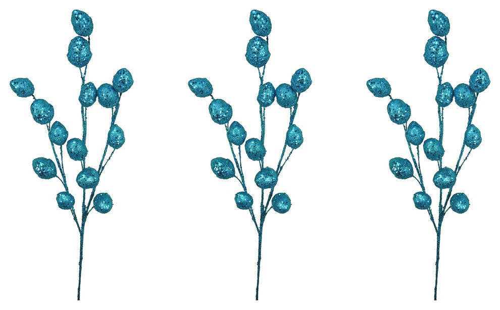 3 Pieces 29" Glitter Oval Ball Christmas Spray, Turquoise