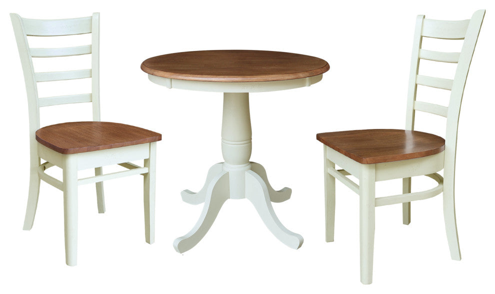30" Round Top Pedestal Dining Table With 2 Dining Chairs