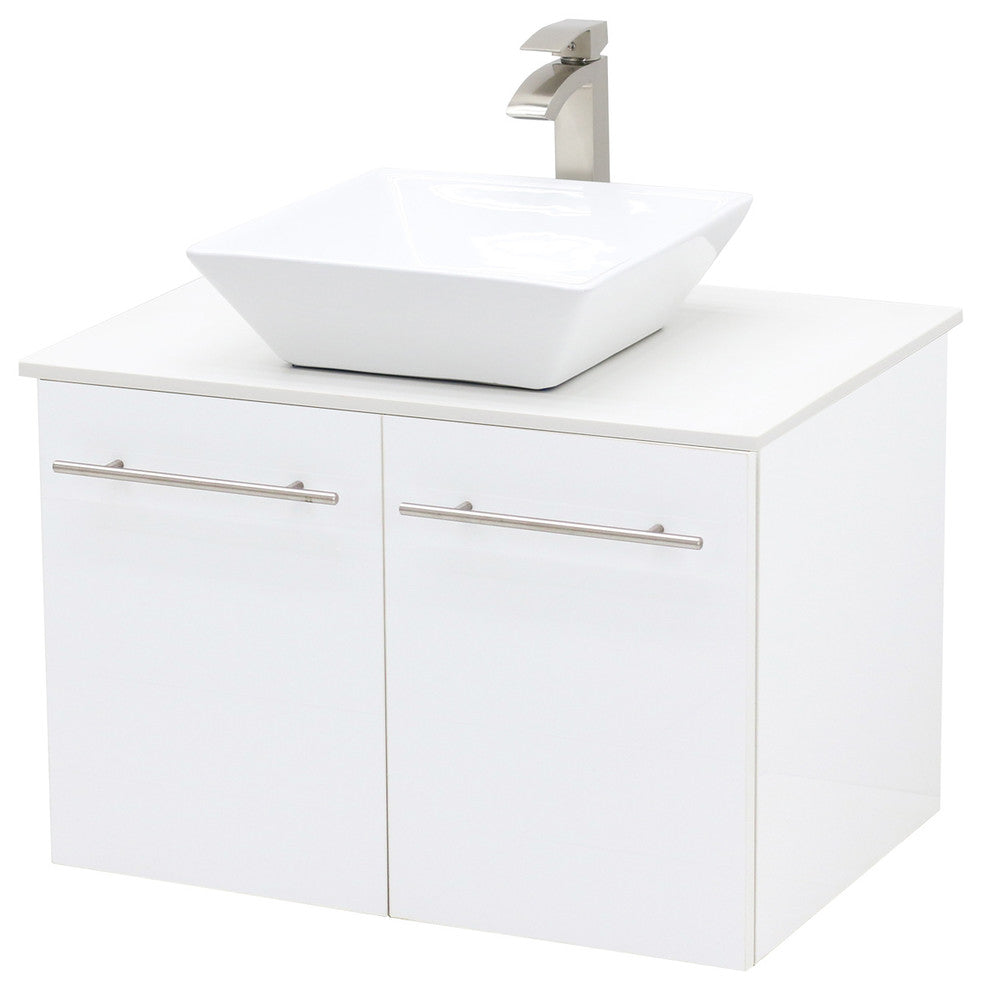 30" Wall Mount Vanity, White Stone Countertop, White Embossed Texture