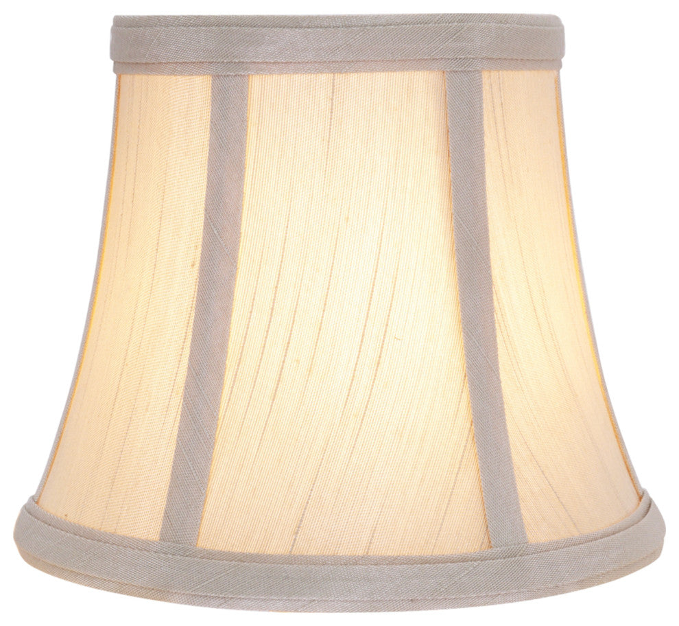 Aspen Creative is dedicated to offering a wide assortment of attractive and well-priced portable lamps, kitchen pendants, vanity wall fixtures, outdoor lighting fixtures, lamp shades, and lamp accessories. We have in-house designers that follow current trends and develop cool new products to meet those trends. Product Detail• Bell Shape Transitional (Mini Chandelier Lamp Shades) in Ivory• Bell (clip on) Replacement Shade | Faux Silk Fabric• Clip-on style fitter designed for bare Torpedo chandelier bulbs (bend tip bulbs not recommended) either in candelabra base (E12) or medium base (E26), light bulbs not included• Clip On Lamp Shade Dimensions: 4" top x 6" bottom x 5" slant height