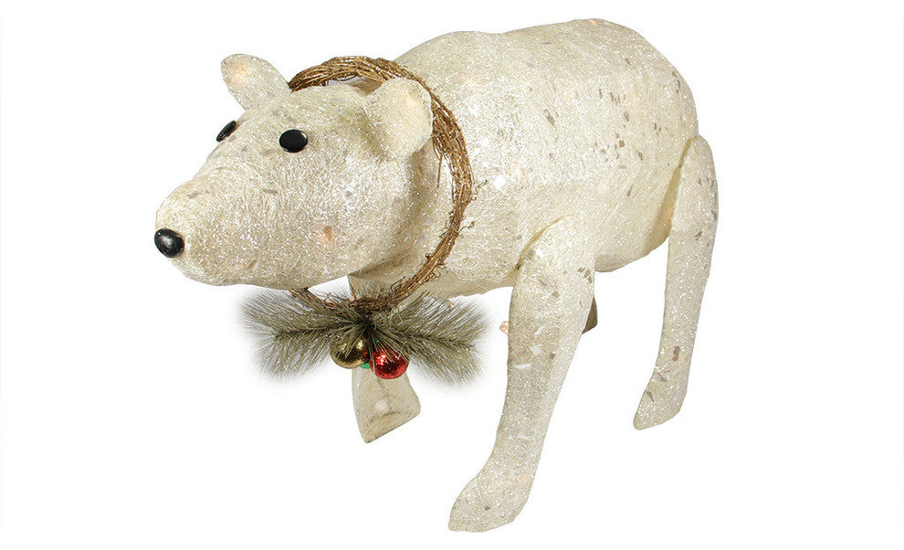 31" Lighted Sparkling Sisal Baby Polar Bear Christmas Yard Art Decoration