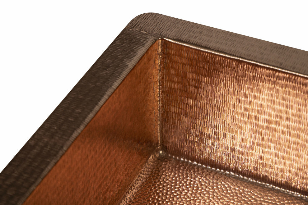 Our beautiful 33x22x9" Farmhouse Single Well Plain Straight Apron Hammered Copper Kitchen Sink makes the perfect addition to your kitchen decor! This sink is beautifully handcrafted by Mexican artisans from 16 gauge certified pure copper (99% copper, 1% zinc, lead free). It features a 2" flat lip, special hammering on the lip, front apron and 4 inside walls, and a 3.5" drain opening (drain not included). It installs easily, either by drop-in or undermount as a farmhouse sink (apron on front). Additionally, copper is naturally more antibacterial and antimicrobial than other metals. We are confident this sink will add tremendous style and value to your home decor!