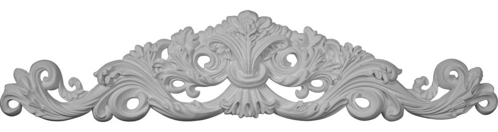 35 3/4"W x 7 7/8"H x 1 5/8"P Harvest Bush Onlay. Our appliques and onlays are the perfect accent pieces to cabinetry, furniture, fireplace mantels, ceilings, and more. Each pattern is carefully crafted after traditional and historical designs. Each polyurethane piece is easily installed, just like wood pieces, with simple glues and finish nails. Another benefit of polyurethane is it will not rot or crack, and is impervious to insect manifestations. It comes to you factory primed and ready for your paint, faux finish, gel stain, marbleizing and more.