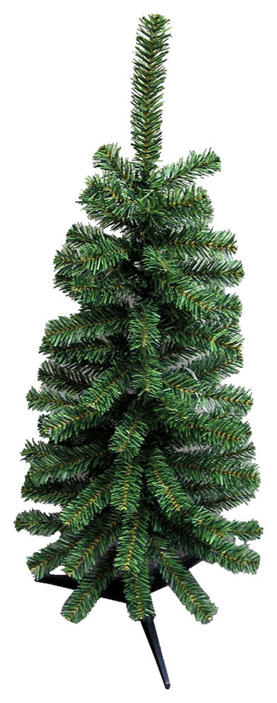 36" Artificial Canadian Christmas tree PVC pine tabletop tree with 70 Tips and plastic stand. A perfect accent piece for a tabletop display or as centerpiece in indoor or covered outdoor locations. Size: 14"L x 14"D x 36"H. Dimensions based on image shown. Primping required to match on the image shown.