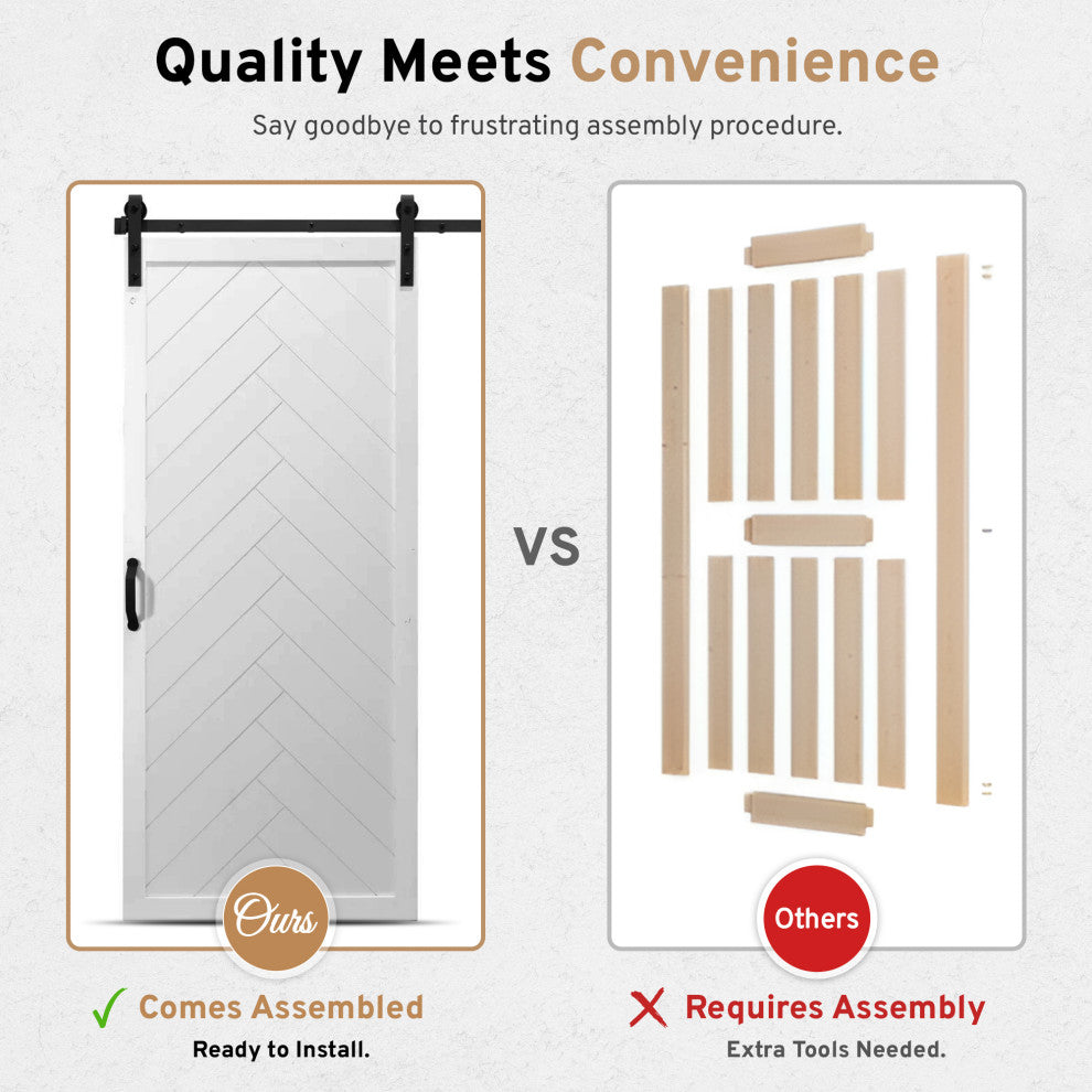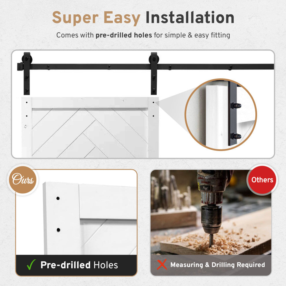 36"x84" Herringbone Double Sliding Barn Doors with Hardware Kit, White