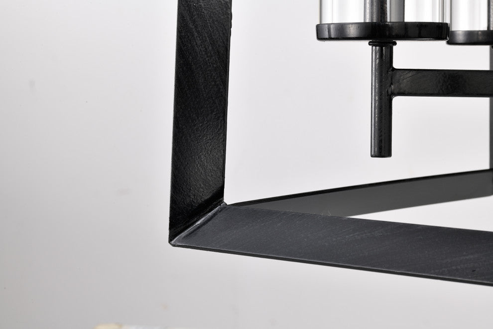 4-Light Antique Black Geometric Cage Lantern Pendant With Clear Glass Shades