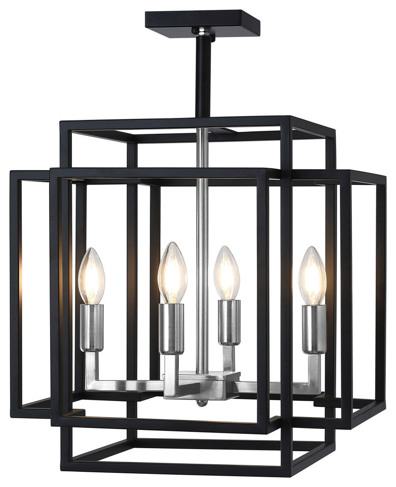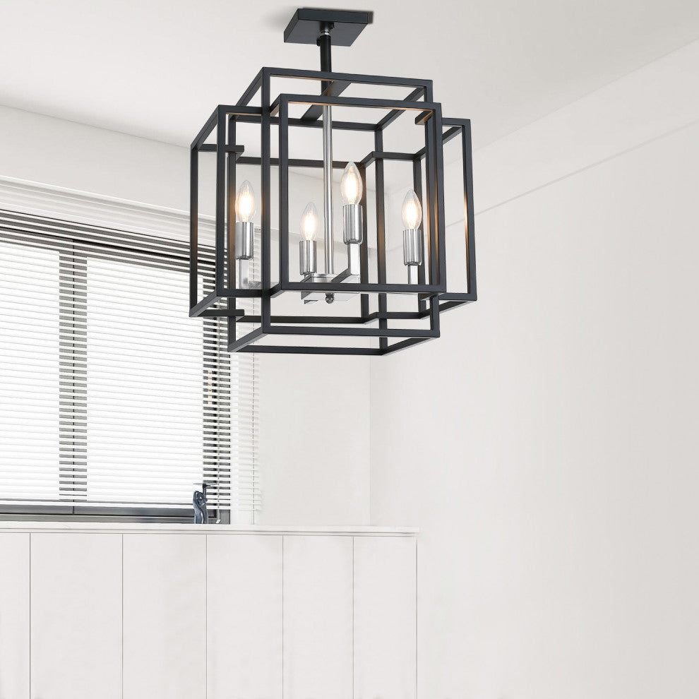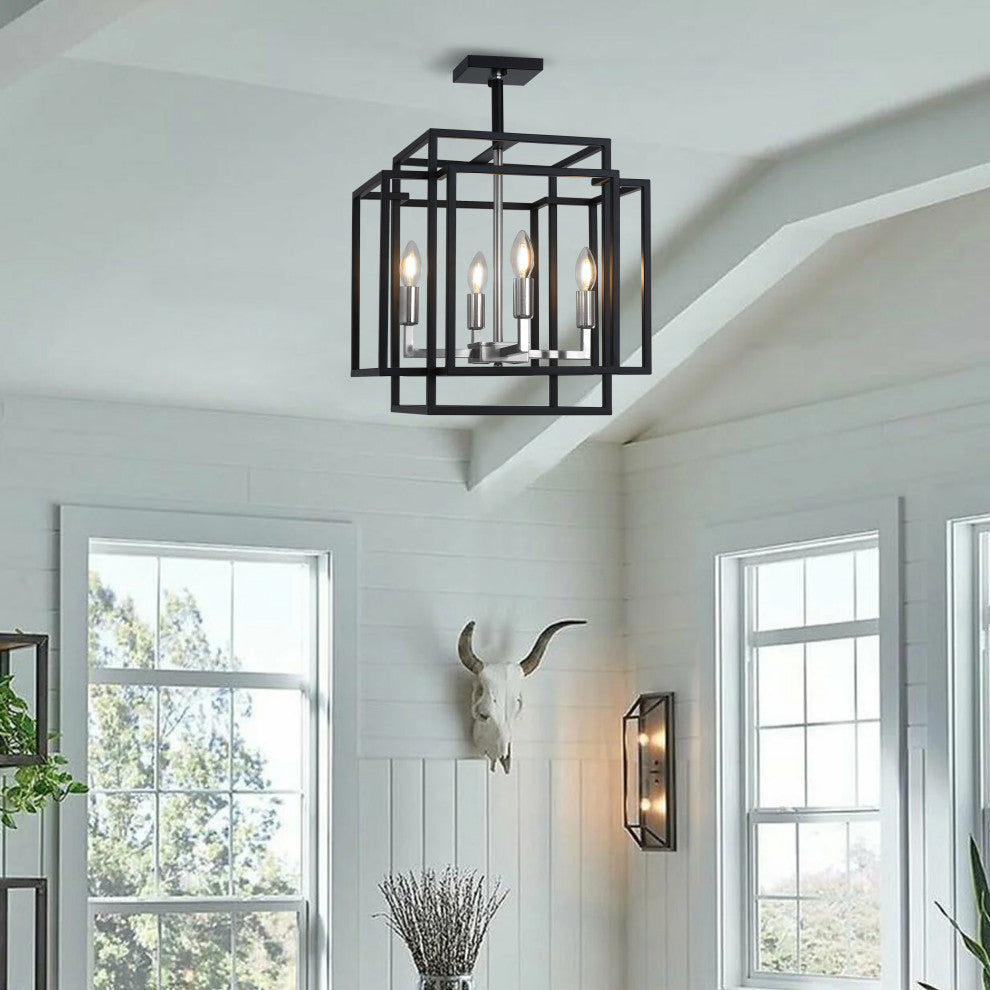 4-Light Industrial Farmhouse Semi Flush Mount Lighting Chandelier