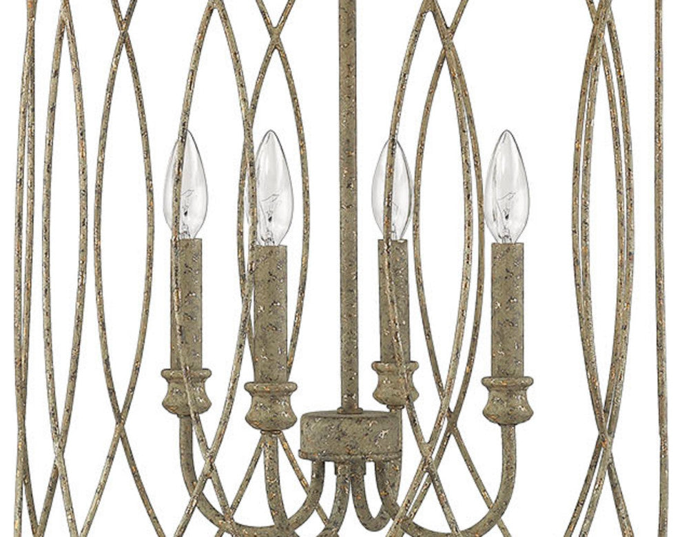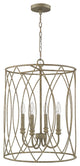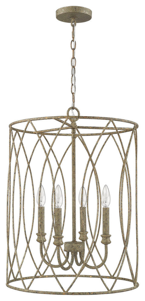 4 Light Rustic Foyer Pendant in Grey with a touch of gold leaf