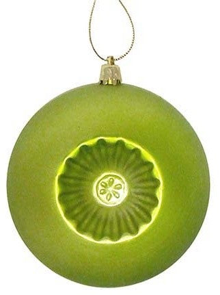 4" Matte Retro Reflector Shatterproof Christmas Ball Ornaments, Green Kiwi