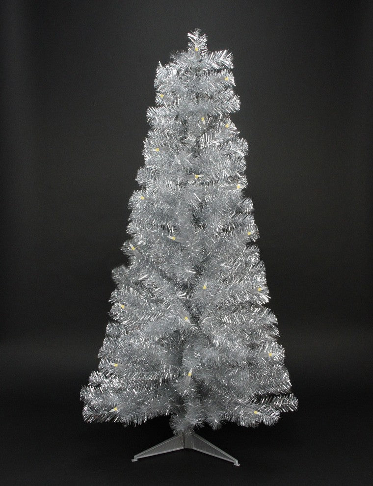 4' X, 24" Pre-Lit Slim Silver Artificial Tinsel Christmas Tree- Clear Lights