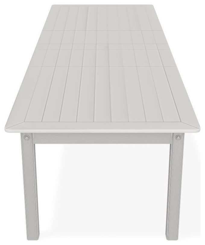 Marine Grade Polymer Top Tables combine modern design with unmatched durability for outdoor living. With options in coffee, chat, dining, accessory, balcony, and bar heights, they offer versatility for any setting. Sleek lines and sharp angles create a clean, contemporary look, while marine-grade polymer surfaces resist cracking, rotting, and water damage. Built to last, these tables are a practical and stylish choice for outdoor spaces.Features:•  Overall product dimensions are 42" W x 88" D x 28.5" H•  Durable marine grade polymer resists cracking, rotting, and water damage, inside and out•  High-quality 100% stainless steel hardware•  Slat design ensures durability, water drainage, and a sleek look•  Low-maintenance and easy to clean•  Available in multiple color variations•  Proudly made in the USA with over a century of craftsmanship since 1903Dimensions:Dining Table•  Assembled Product: 42 inches wide x 88 inches deep x 28.5 inches high•  Max Depth: 120 inches•  Min Depth: 88 inches•  Weight Capacity: 350 pounds•  Max Extension Length: 120 inches