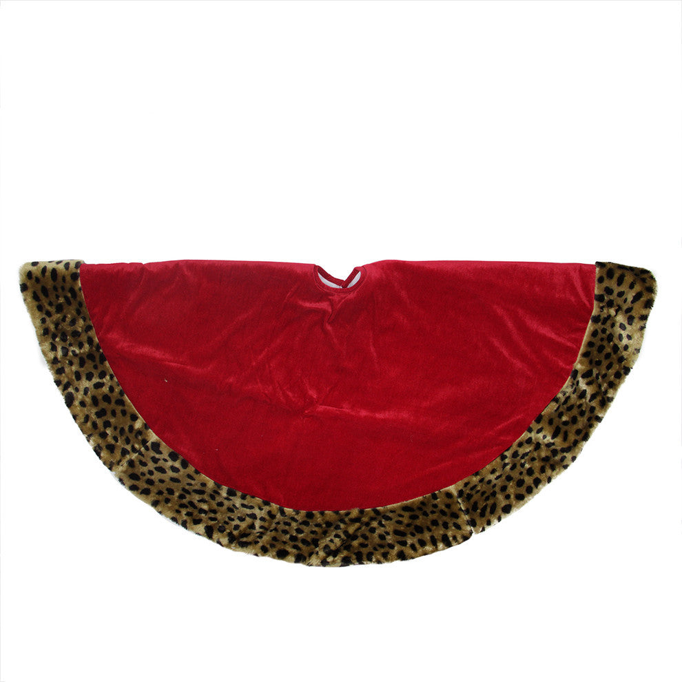 Festooning Xmas tree is an integral part of the merry season! This traditional red tree skirt that features a plush cheetah print trim will not only catch the falling needles but will make you fall hard for it as well. We bet you can''t say ''No'' to it! Product Features: Traditional red tree skirt is elegantly enhanced with a plush cheetah print border One-sided design Recommended for indoor use only Care instructions: spot clean only Dimensions: 48" diameter Material(s): polyester/velveteen