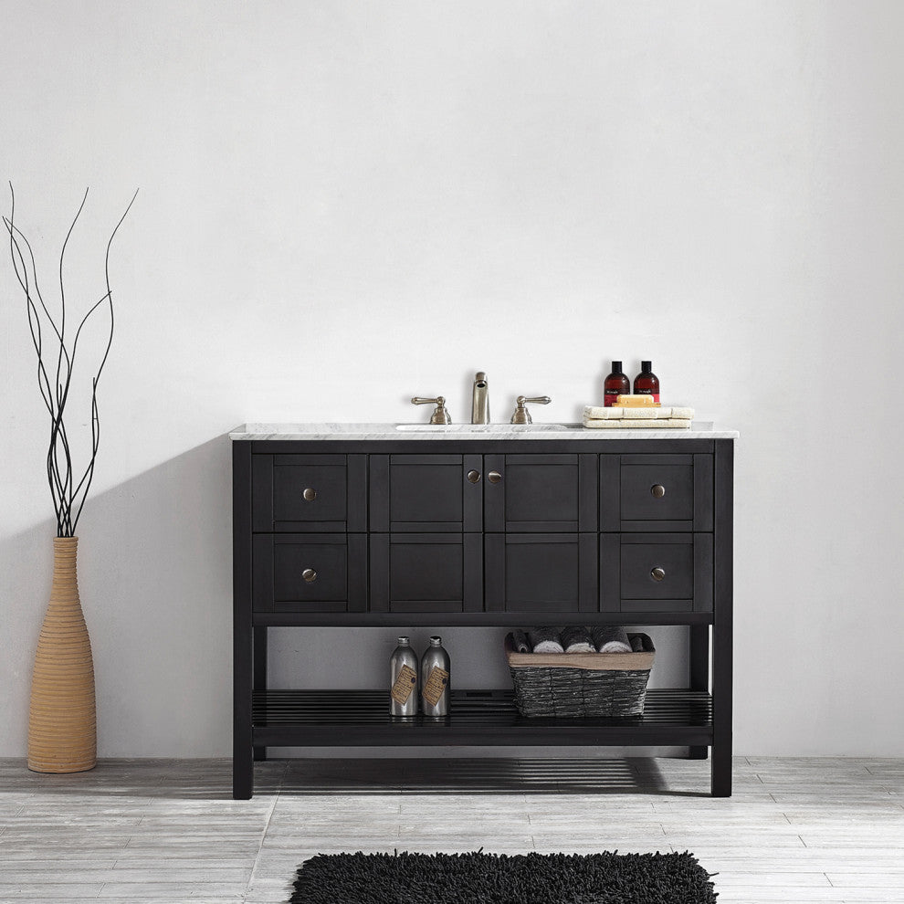 48" Vanity in Espresso with Carrara White Marble Countertop Without Mirror