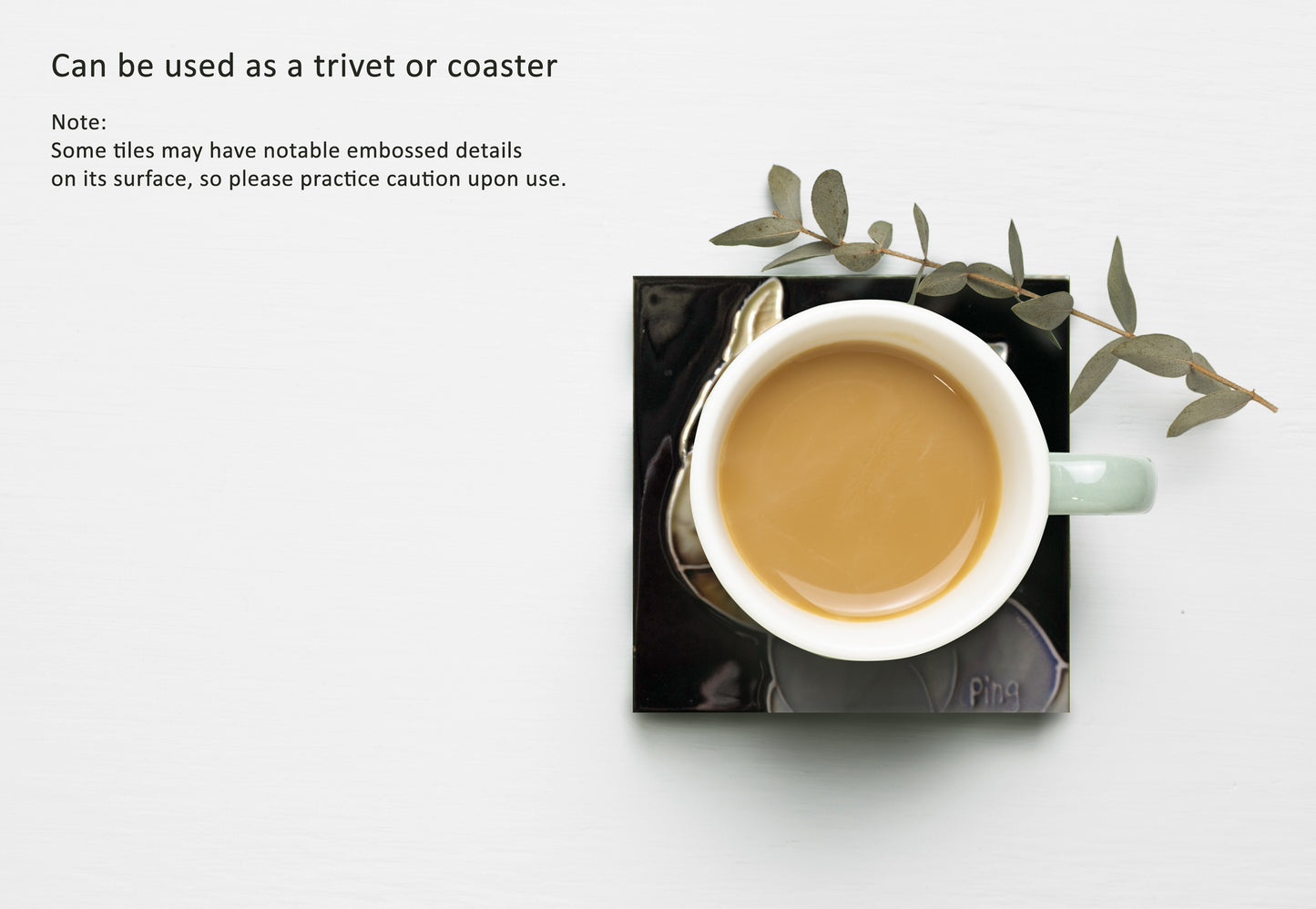 Each tile is hand crafted, hand glazed, and kiln fired to show the most vibrant colors of ceramic arts. Due to the slow firing and cooling nature of the process, our products can take sunlight, moisture, stain, heat, and the color will remain the same. This superior durability makes them great for all kinds of applications as well as both indoor and outdoor display. For convenience, the art tiles come with backings which enable them to stand by themselves like picture frames or be hung on the wall with a nail.