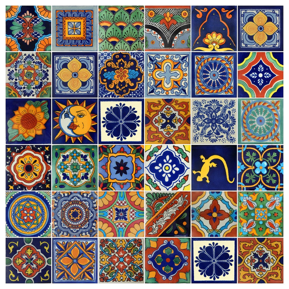 4"x4" Individual Piece Mexican Talavera Handmade Tiles, 100-Piece Set