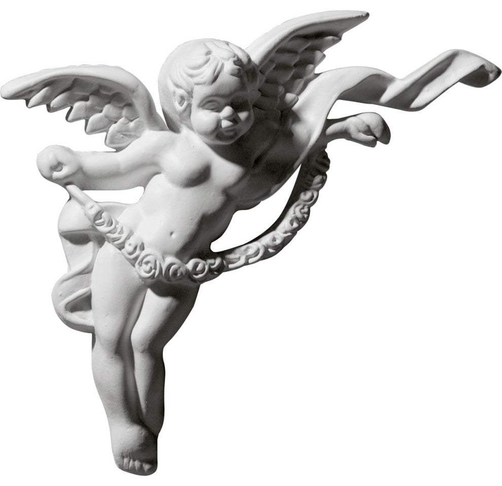 5 1/8"W x 6 5/8"H x 1 1/8"P Angel Onlay - Left. Our appliques and onlays are the perfect accent pieces to cabinetry, furniture, fireplace mantels, ceilings, and more. Each pattern is carefully crafted after traditional and historical designs. Each polyurethane piece is easily installed, just like wood pieces, with simple glues and finish nails. Another benefit of polyurethane is it will not rot or crack, and is impervious to insect manifestations. It comes to you factory primed and ready for your paint, faux finish, gel stain, marbleizing and more.