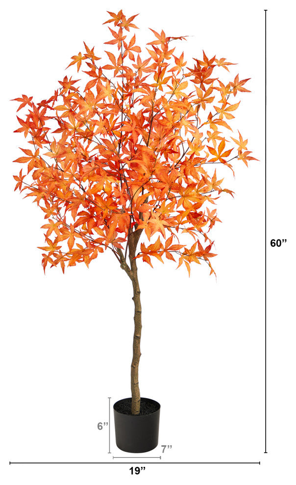 Remind yourself of the most spectacular foliage in the world with this Maple Artificial Tree. Inspired by the Northeast''s landscape, bring the fall foliage home by injecting vivid colors in your space with these lifelike maple leaves assembled from high-quality materials. Standing 5ft. from a nursery planter (included in height), house in any compact area. Perfect for Thanksgiving, living rooms or a fall-inspired room. Artificial trees are manufactured using synthetic materials, such as polyester material or plastic, and are well designed and constructed to be life-like in appearance. This item will need to be re-shaped when removed from the secure box to allow it to reach its fullest size. Your artificial tree will look beautiful for years to come; simply wipe clean with a soft dry cloth when needed.