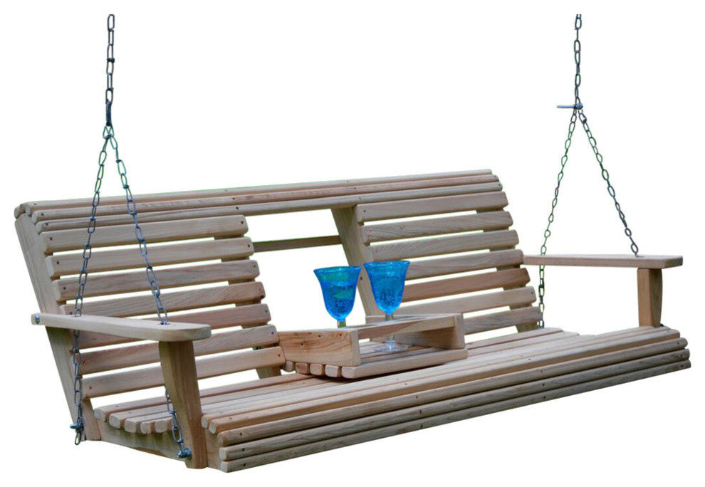 Boasting two drinks holders and a practical collapsible design, this patio swing from Walker Edison is crafted from 100% cypress wood. Beautifully contoured and equipped with two armrests for optimal comfort, this product comes with two chains for easy installation. Crisp and understated in its finish, lines and silhouette, Walker Edison''s early American Cypress Flip Cup Holder Swing makes a chic yet unpretentious addition to any outdoor space.