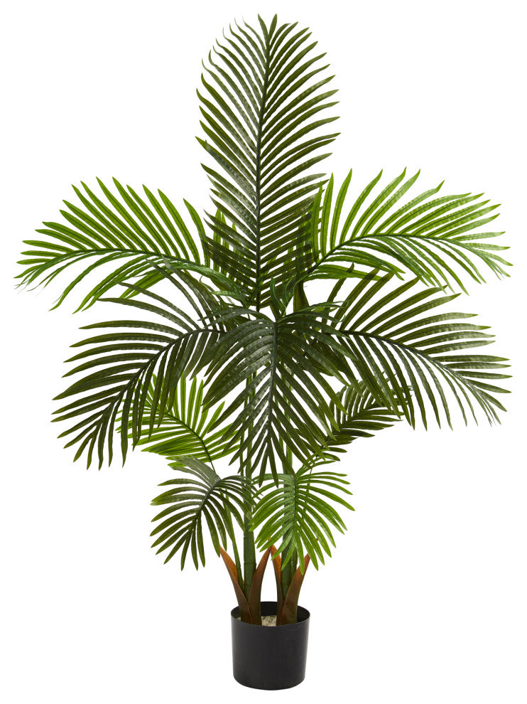 Create a relaxing atmosphere in your home or office with this artificial areca palm tree boasting various tiers of realistic foliage fanning upwards from an accompanying nursery planter. Standing tall and proud at 54" high, this impressive fake tree will provide year-round freshness wherever exhibited.Silk trees are manufactured using synthetic materials, such as polyester material or plastic, and are well designed and constructed to be life-like in appearance. This item will need to be re-shaped when removed from the secure box to allow it to reach its fullest size. Your artificial tree will look beautiful for years to come; simply wipe clean with a soft dry cloth when needed.About Nearly Natural Inc. - For over 75 years, Nearly Natural Inc. has been providing conscientious consumers with beautiful alternatives to natural decorations. Employing and advised by naturalists who understand the live plant world, Nearly Natural is able to recreate the most realistic-looking decorative items for homes, offices, and businesses. Driven by a true commitment to customer service, attention to detail, and natural philosophy, Nearly Natural strives to bring customers the most beautiful, unique, and striking faux plants and floral on the market.