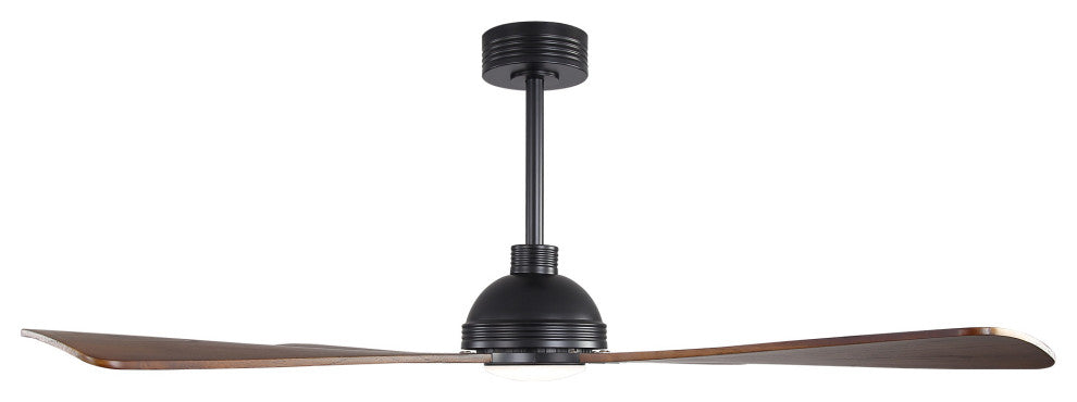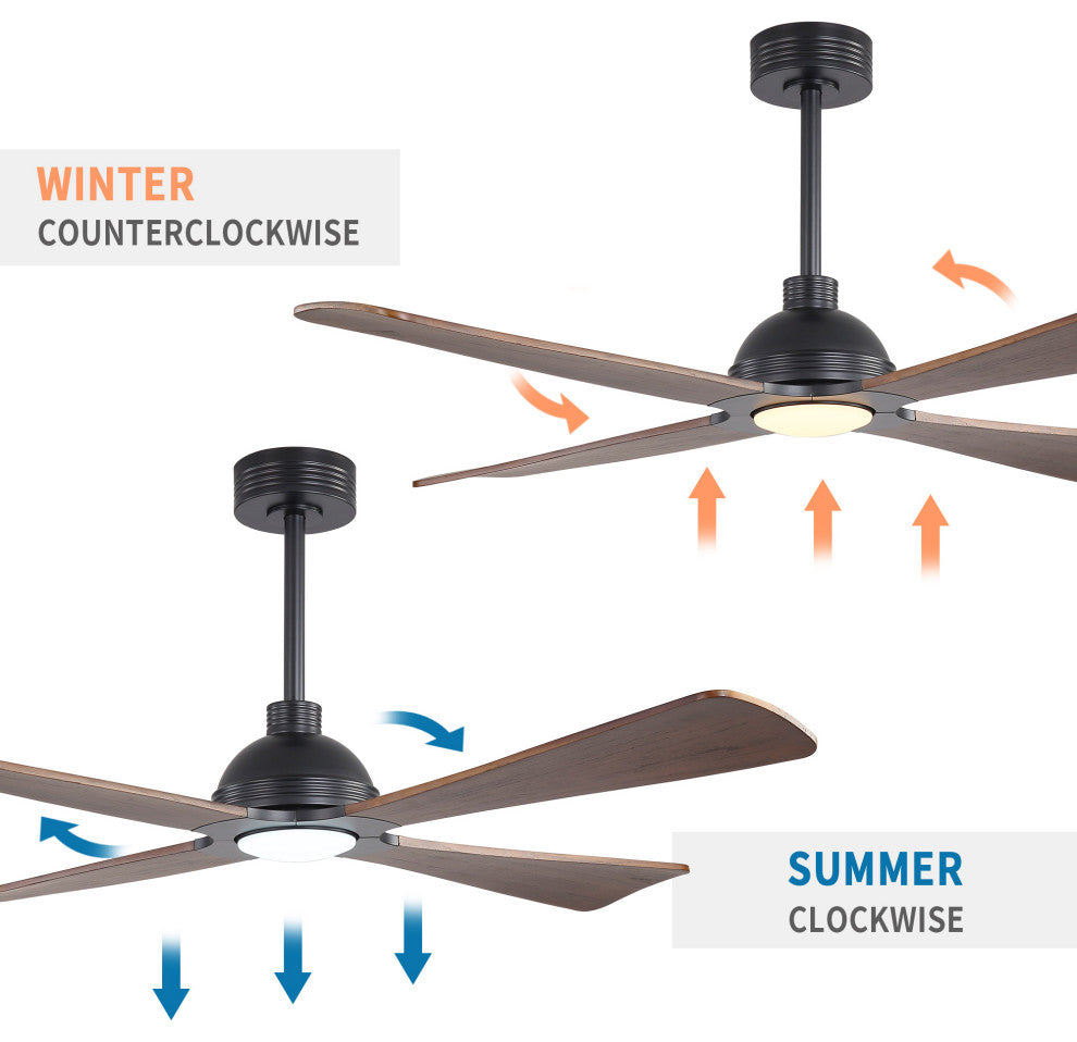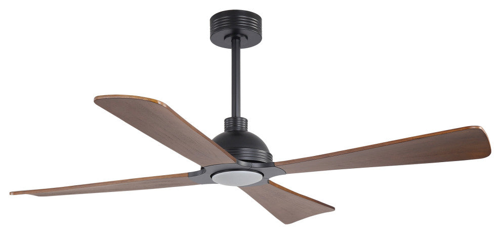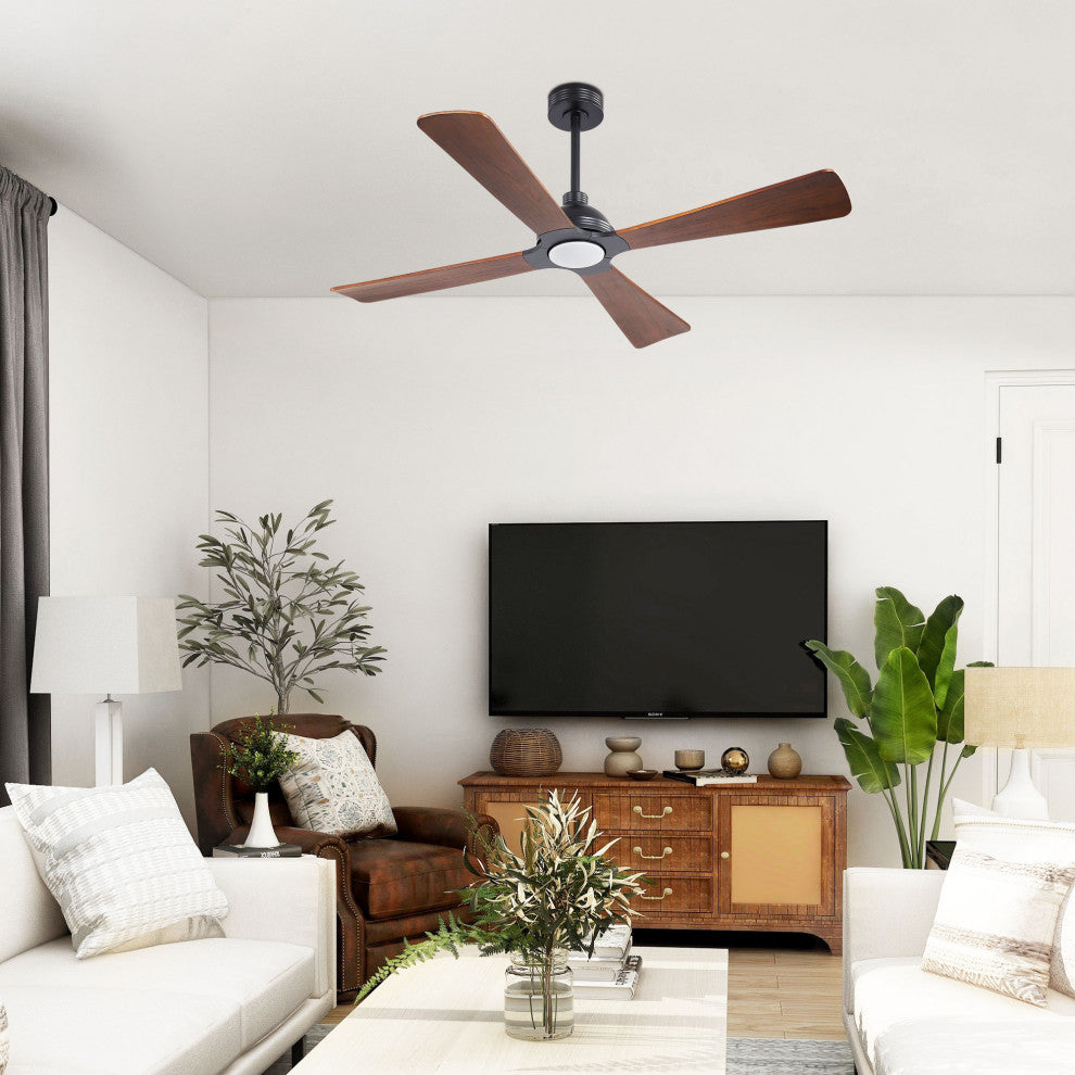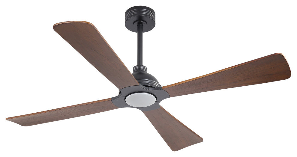 56" 4-Blade Solid Wood Ceiling Fan with LED Light and Remote Control, Black/Walnut