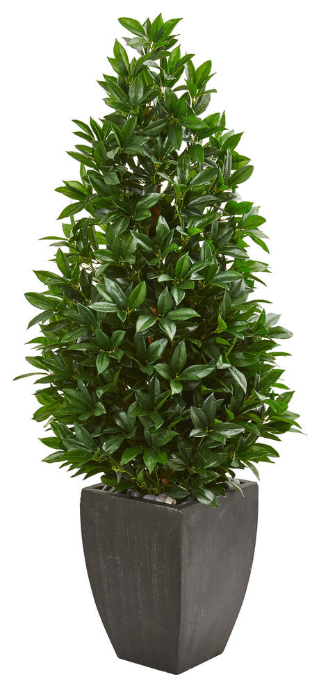 56" Bay Leaf Cone Topiary Artificial Tree UV Resistant in Black Planter