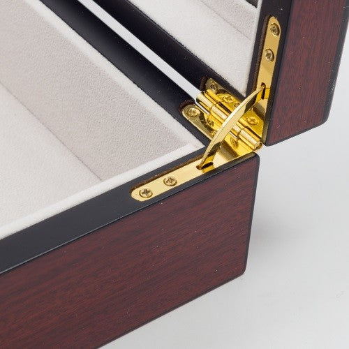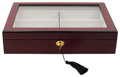 Tastefully protects, stores, and organizes up to 6 pairs of oversized glassesCase Dimensions: 10.5" L x 15" W x 3.25" H, Eyeglass Compartments: 3" L x 6.75" WKeeps glasses protected and scratch-freeElegant lock and key offer increased securityCan also be used to store a variety of collectiblesHandsome accessory for your nightstand, desk, or dresser
