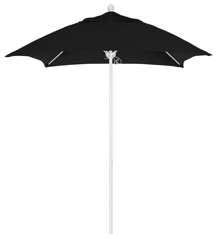 6' Square Matted White Push Lift Fiberglass Rib Aluminum Umbrella, Sunbrella, Black