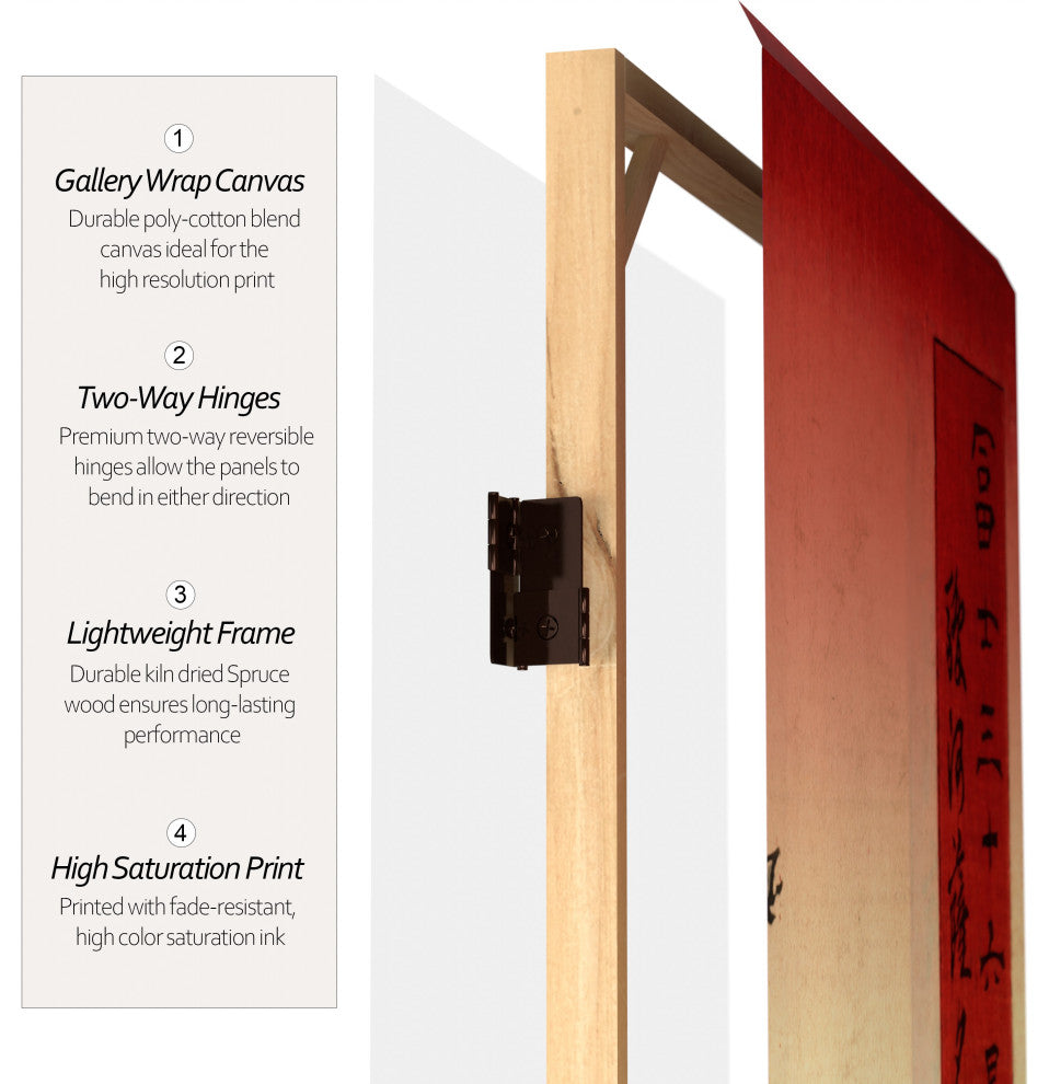 Wood and Canvas Construction: Our room divider features a durable poly-cotton blend canvas ideal for the high resolution print. The durable kiln dried Spruce wood ensures long-lasting performance while being light enough to move and store easily.