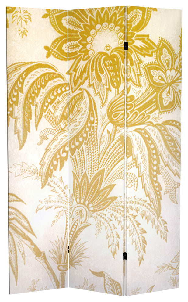 This distinctive privacy screen features an image reminiscent of French toile designs from the 19th century, with a simple, subtle, neutral color combination. The neutral colors and simple pattern makes this a practical decorative accessory, while providing a formal elegance. Room Dividers like this one are perfect for many uses such as a folding privacy screen, portable room partition, or backdrop to a plant or statue. They are great for home, office, or small business.