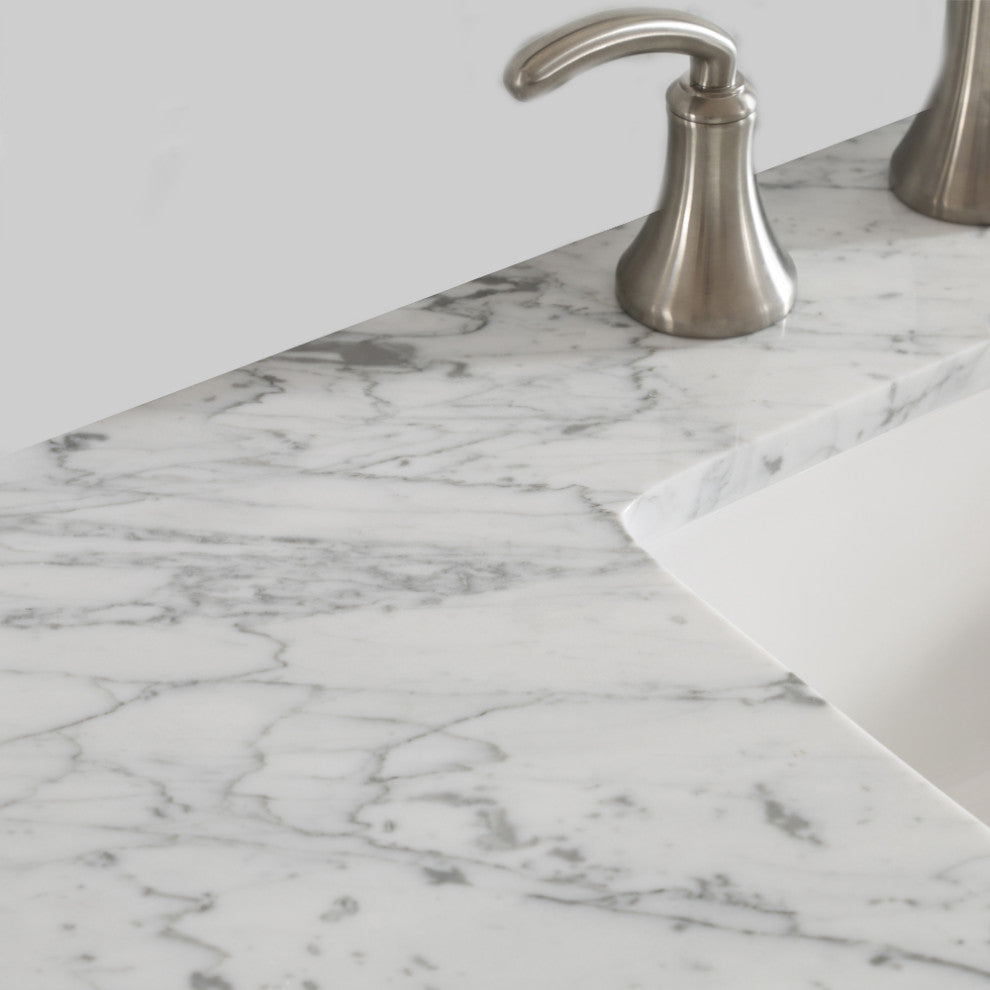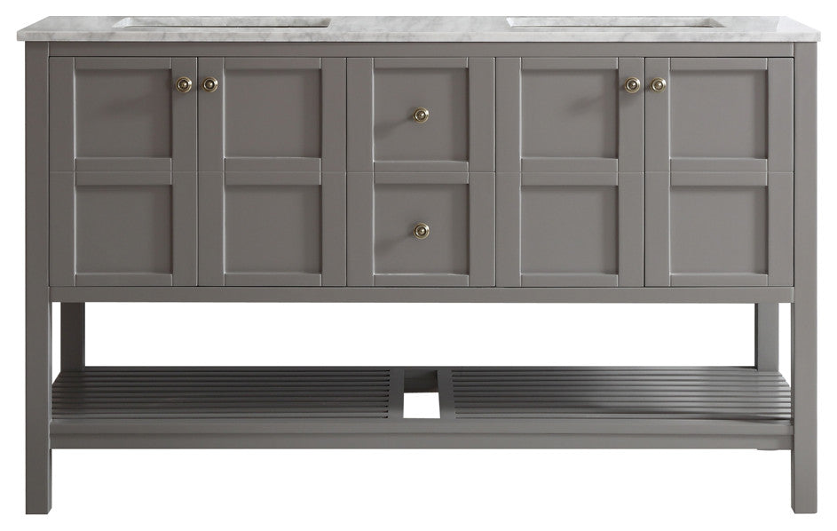 60" Double Vanity in Grey with Carrara White Marble Countertop Without Mirror