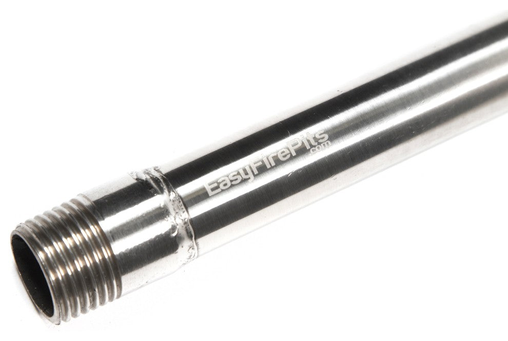 60 inch long 316 Marine Grade Stainless Burner with 1/2" MALE thread on end and 2 rows of burner holes at 45 degrees left and right on the top. Known by some as a Stainless Log Lighter. Ideal for the harshest outdoor climates. Sealed end perimeter. Model: B60