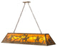Cowboys riding horses rustle a steer on the mountain range are depicted on this oblong pendant. The fixtures finished in Antique Copper, has Amber mica panels, and is handcrafted in the USA by Meyda artisans.
