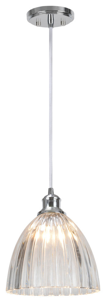 Aspen Creative is dedicated to offering a wide assortment of attractive and well-priced portable lamps, kitchen pendants, vanity wall fixtures, outdoor lighting fixtures, lamp shades, and lamp accessories. We have in-house designers that follow current trends and develop cool new products to meet those trends. Product Detail• Fixture Body Dimensions: 9 3/4" diameter x 11" height | Fixture provided with 72" of field-cuttable cloth cord• Uses 1 - (E26) Medium base light bulb 60 watt max (bulb not included)• Chrome Finish | UL listed for indoor, dry location• Suitable for dining room, bedroom and living room, kitchen island and restaurant bar applications