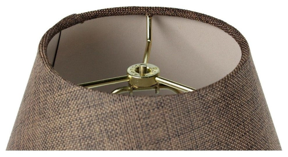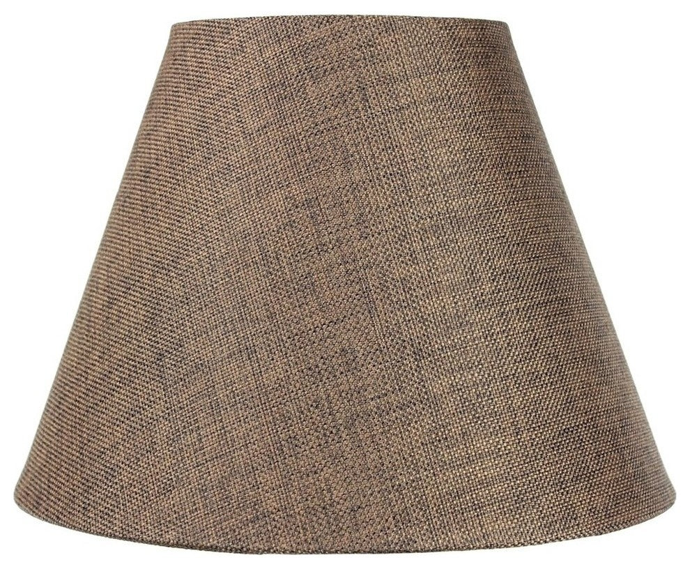 Home Concept Signature Shades feature the finest premium hardback parchment. Durable parchment means your new lampshade will last for years. It wont get brittle from smoke or sunlight like less expensive shades. Heavy brass and steel frames means your shades can withstand abuse from kids and pets. It''s a difference you can feel when you lift it. Chocolate Burlap Fabric Beige Fabric Liner; Includes Washer with 1 drop, design to sit atop of your lamp Top shelf empire hardback lampshade, found in better lighting showrooms. Durable Hotel quality shade. 6 Top x 12 Bottom x 9 Slant Height Height is measured on the slant in a straight line, it is not the vertical height Fits best with a 7 harp.