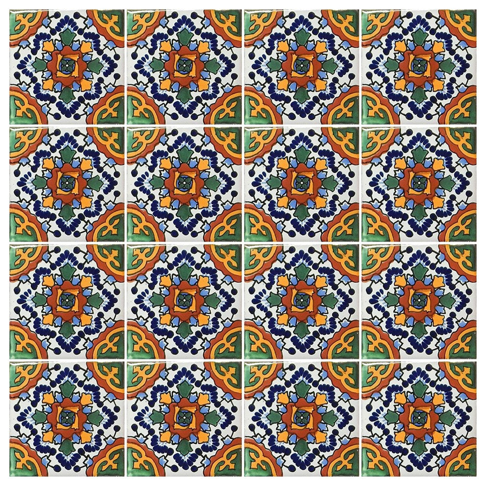 Box of 40 individual pieces of Mexican Talavera Tiles the same design as the picture.Each tile piece is 6"x6" .These are made in Mexico.The body of the tile is made of clay, each piece is unique.Mexican Tiles are handmade and hand painted due this process these may present variations in color, size and design.Please note: Colors may vary depending on the type of computer screen you are using.Tiles are not frost proof.Tiles are not suitable for floor projects, but they are perfect for walls, counter tops, backsplash, staircases. etc.Number of Pieces per Box: 40Sq. ft. per Box: 10Individual Tile