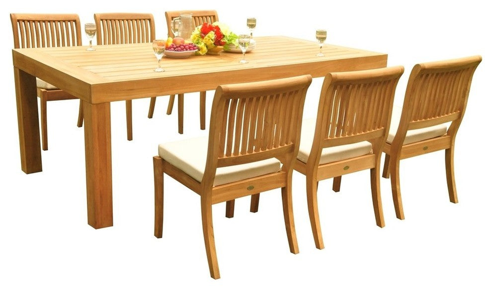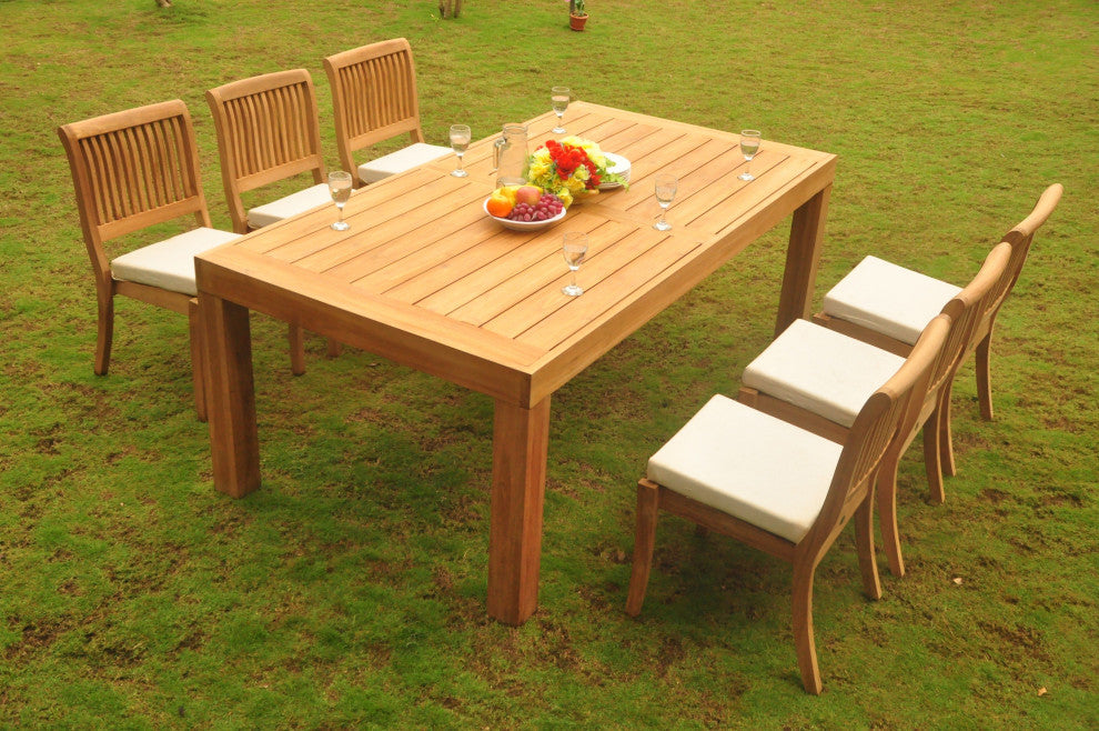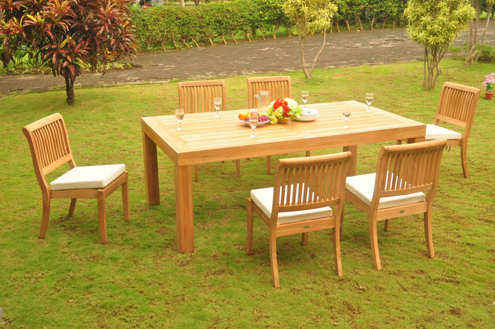 7-Piece Outdoor Teak Dining Set, 86" Table, 6 Arbor Stacking Armless Chairs