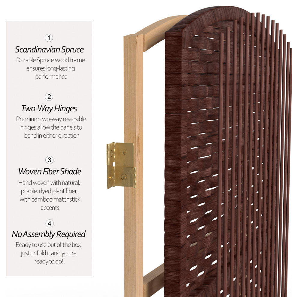Elevate your space with our lightweight woven plant fiber room divider, a perfect blend of beauty and function. Standing at an impressive seven feet tall, it is perfectly designed for open concept offices or spacious homes. The sturdy panels are woven in a distinctive diamond pattern creating an airy, sophisticated aesthetic suitable for traditional design, and the pliable plant fiber captures dye fully and features a rich, warm color perfect for bohemian and modern spaces. This versatile piece allows light and air to flow while adding some privacy, making it ideal for both decorative backgrounds and functional partitions in your living room, study, or place of business. Experience the harmonious fusion of functional beauty with this exquisite addition. Whether you''re carving out a dedicated workspace or creating a private reading nook, our woven plant fiber desktop room divider exemplifies style and versatility, transforming your space into one of elegance and purpose.