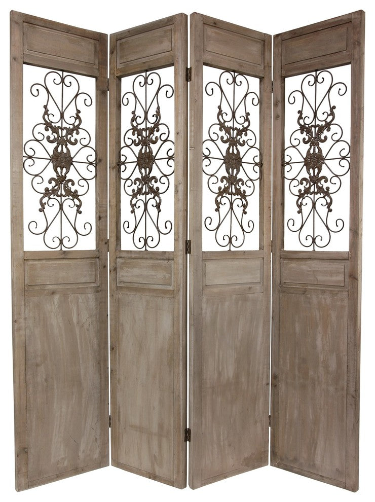 Introduce a rustic touch to your living space with this room divider, carefully hand crafted from wood and metal, this divider features a charming distressed finish that adds character and warmth to any room. Its rustic design complements a variety of décor styles, from industrial to farmhouse. Perfect for creating separate areas in an open-concept space or adding visual interest to your home, this divider is as functional as it is stylish. Enjoy the unique texture and visual appeal it brings to your living space.