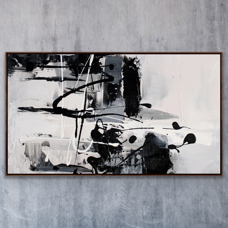 72x36 inches Minimal Black and white modern abstract painting Large wall art